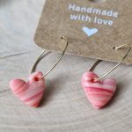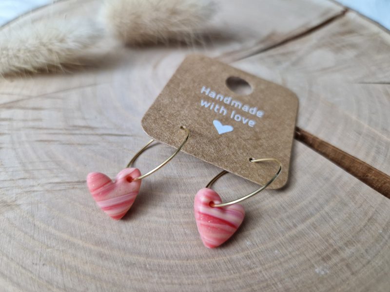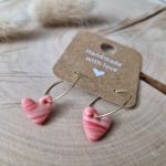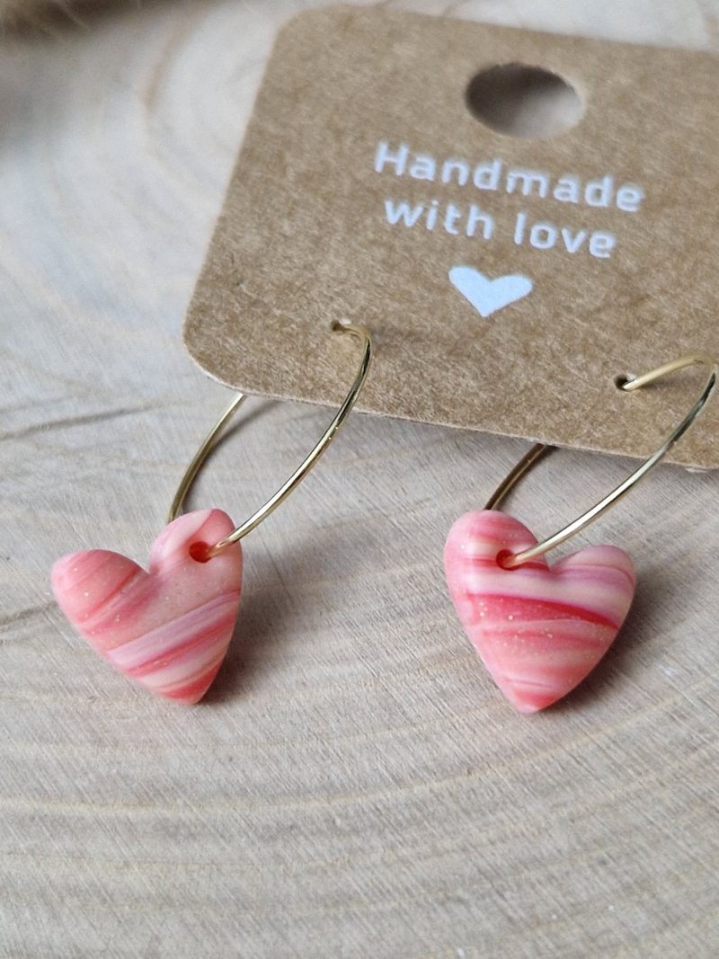 Edelstahl Creole mit Fimo Herz in Rottönen