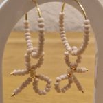 Die Perlen sind leicht Beige und in der Mitte der Schleife ist eine kleine Kristallglasperle.