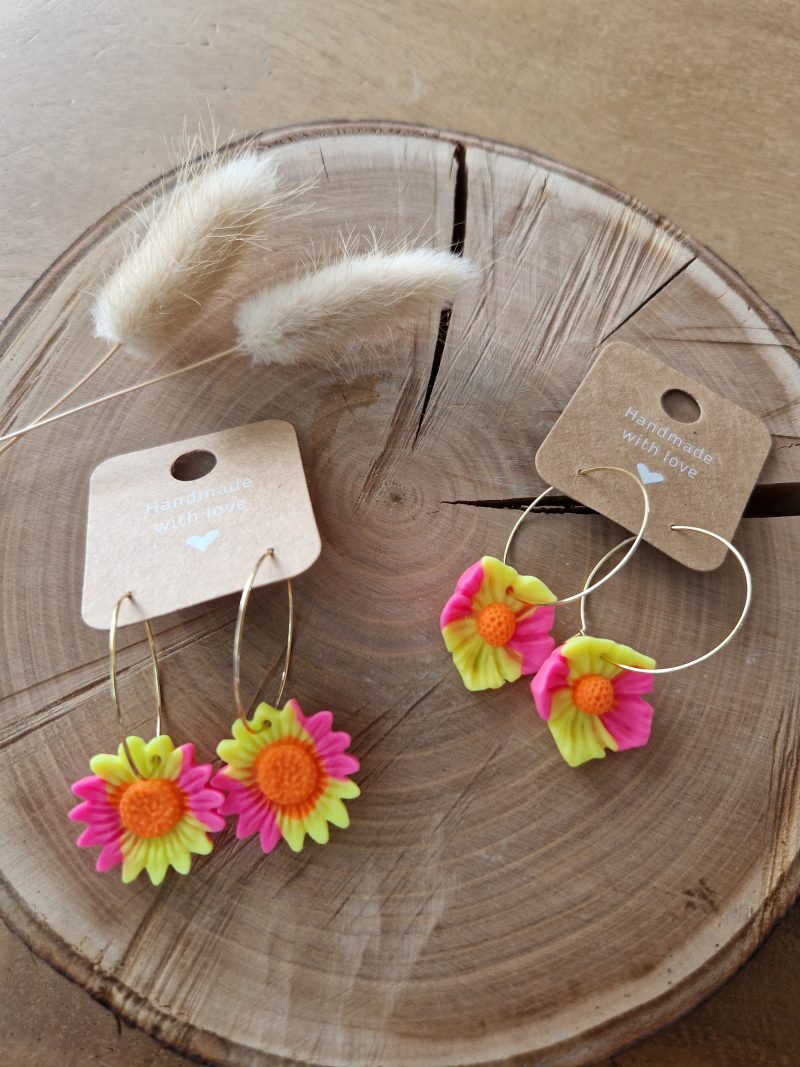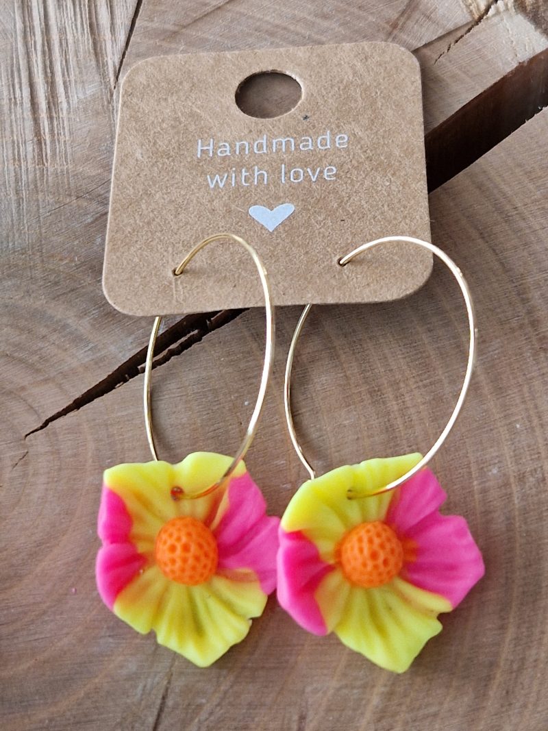 Die Besonderheit ist, dass dieser Ohrschmuck durch das Fimo Design sehr leicht und angenehm zu tragen ist und das den ganzen Tag.