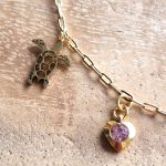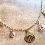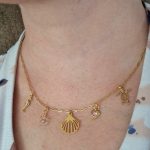 Edelstahlkette Gold mit Charms/Anhänger Muschel, Seepferdchen, Schildkröte, Herzchen mit Zirkonia und Perlenblume