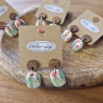 Ohrhänger mit floralem Muster aus Fimo, Holz & Edelstahl (Variante 2)