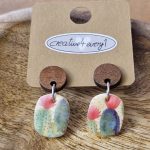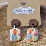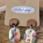 Diese Ohrhänger sind aus Fimo, Holz und Edelstahl, eine Kombination aus 3 tollen Produkten, die mit ihrem floralem Muster und den schönen Farben Dein Outfit ergänzen.