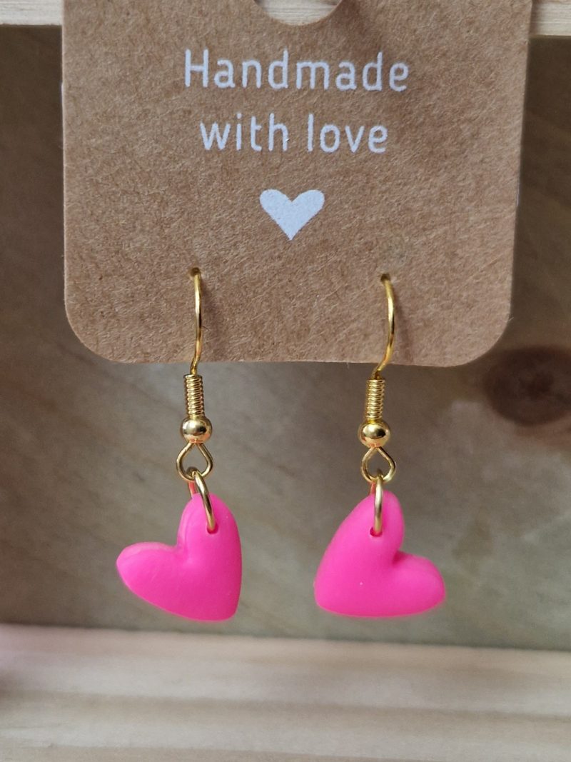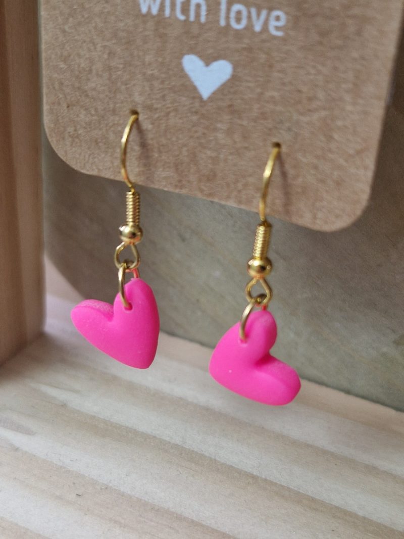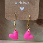 Diese Edelstahlohrhänger mit Fimo Herzchen in Neon Pink sind einfach ein kleiner Hingucker.
