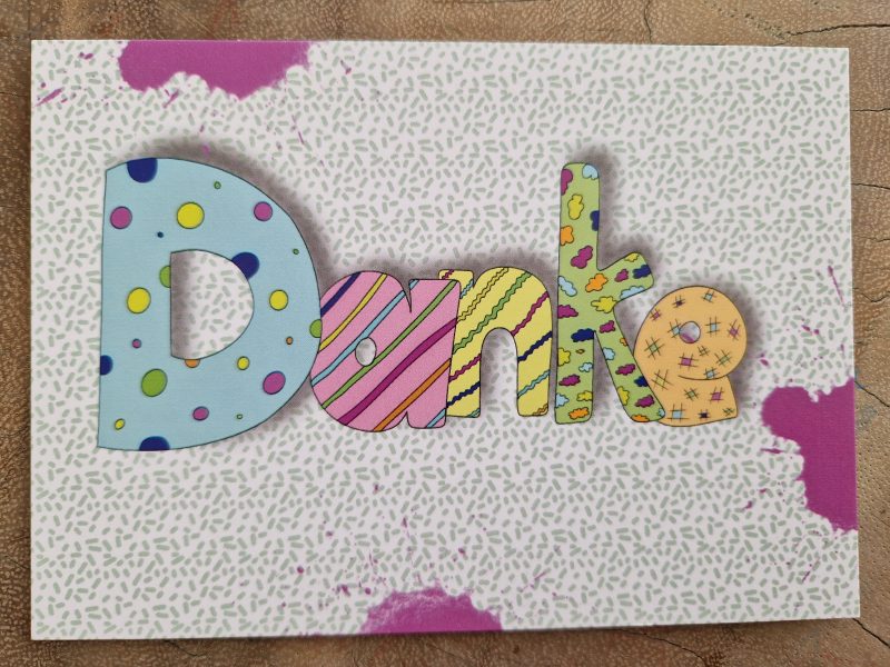Suchst Du eine Karte mit der Du DANKE sagen möchtest? Dann ist diese Karte genau die richtige. Die Karte wurde von mir mit viel Liebe zum Detail gezeichnet.