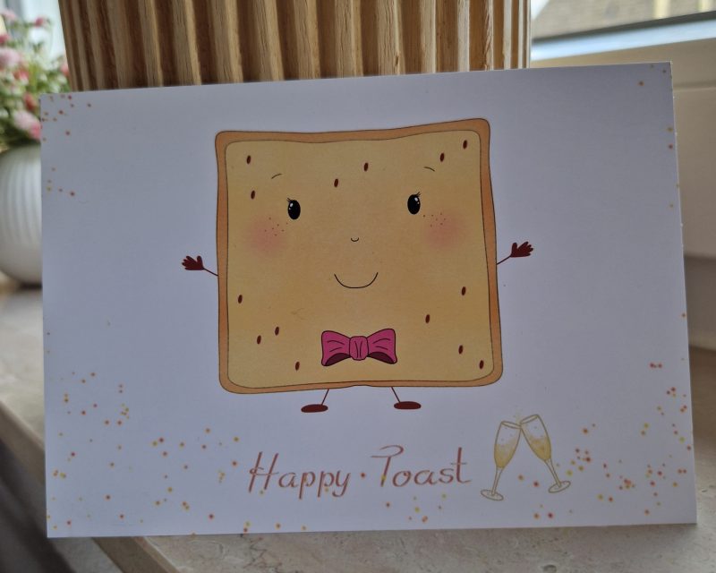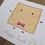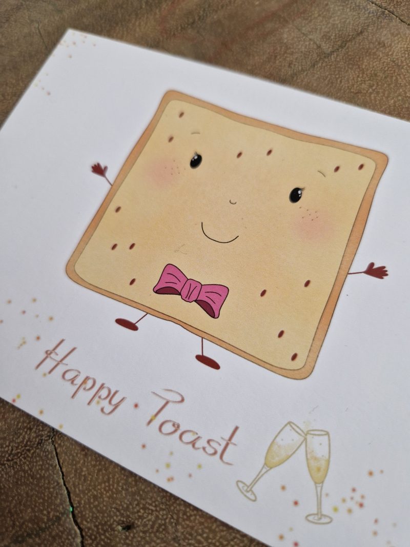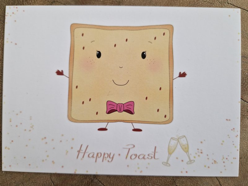 Suchst Du eine lustige und farbenfrohe Geburtstagskarte? Dann ist die Karte Happy Toast genau die richtige. Die Karte wurde von mir mit viel Liebe zum Detail gezeichnet.