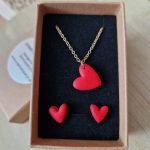 Schmuckset Knallrotes Herz (1x Kette und 1x Ohrstecker aus Fimo & Edelstahl)